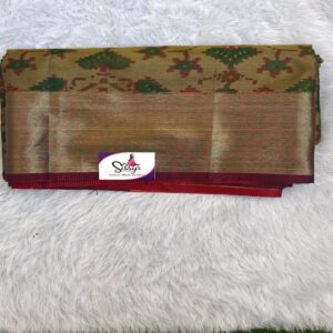 Soft Silk Floral Saree – Antique Gold with Contrast Maroon Border