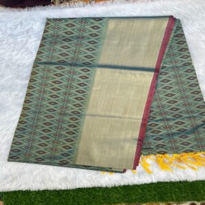 Pochampally Soft Silk Saree – Teal Green Ikat Motifs, Contrast Border