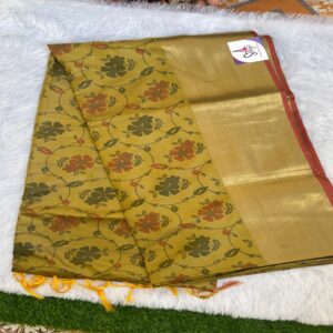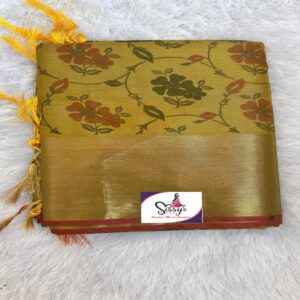 Soft Silk Floral Saree – Mustard Gold with Contrast Border